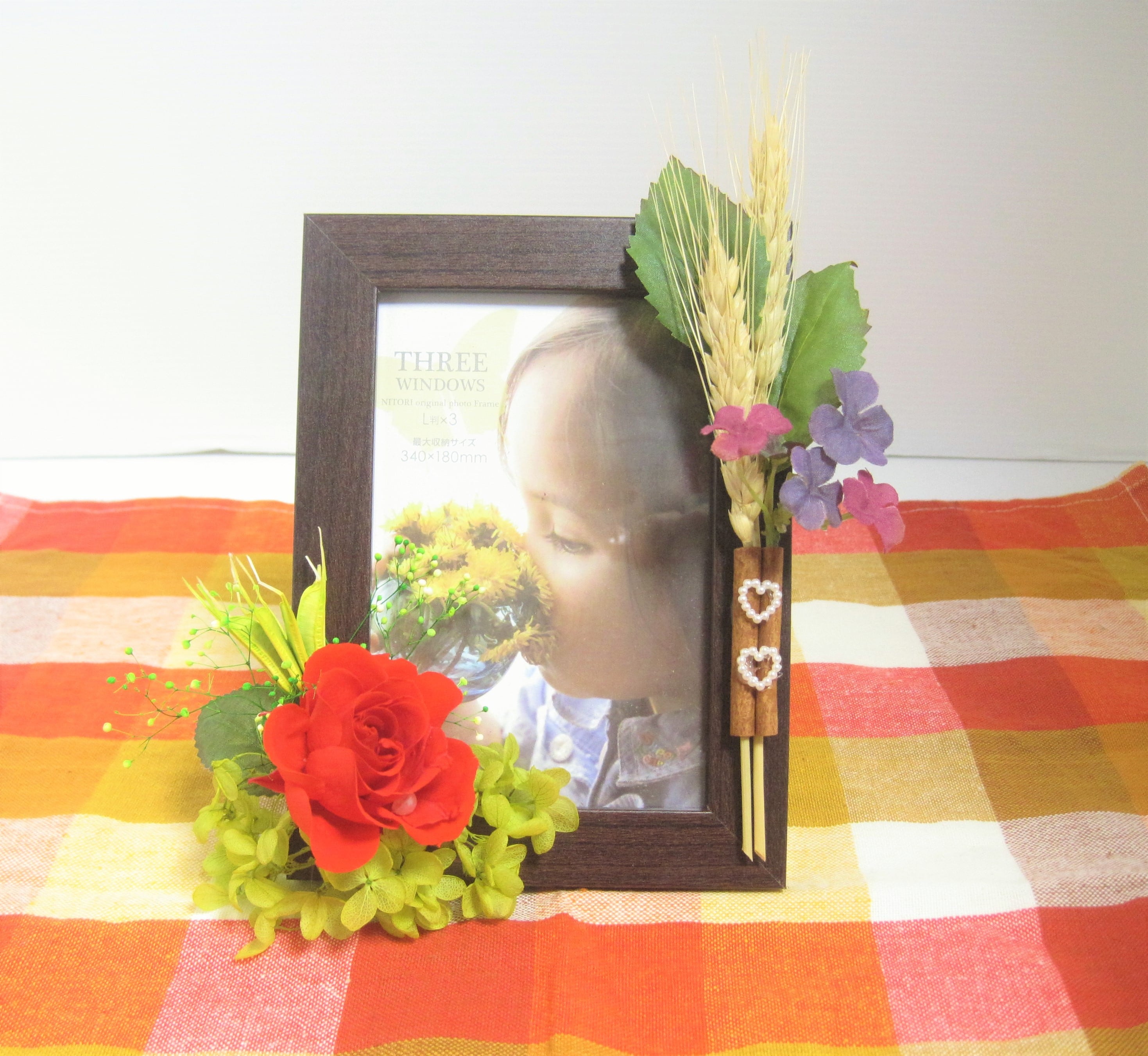 花いずものフォト (プリザフォトスタンド :赤薔薇 フレーム色ブラウン) 「Mugihos」