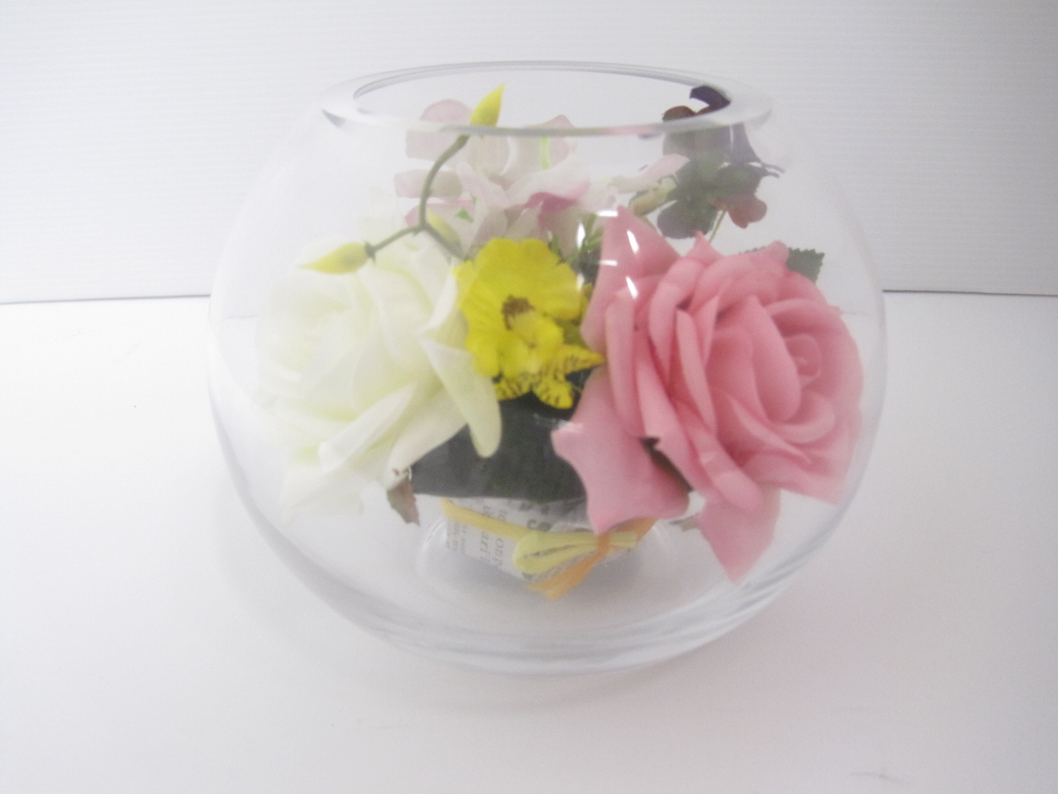花いずものグラスアート (アーティフィシャルフラワー:ラウンドグラス) 「The friendship of rose and hydrangea」