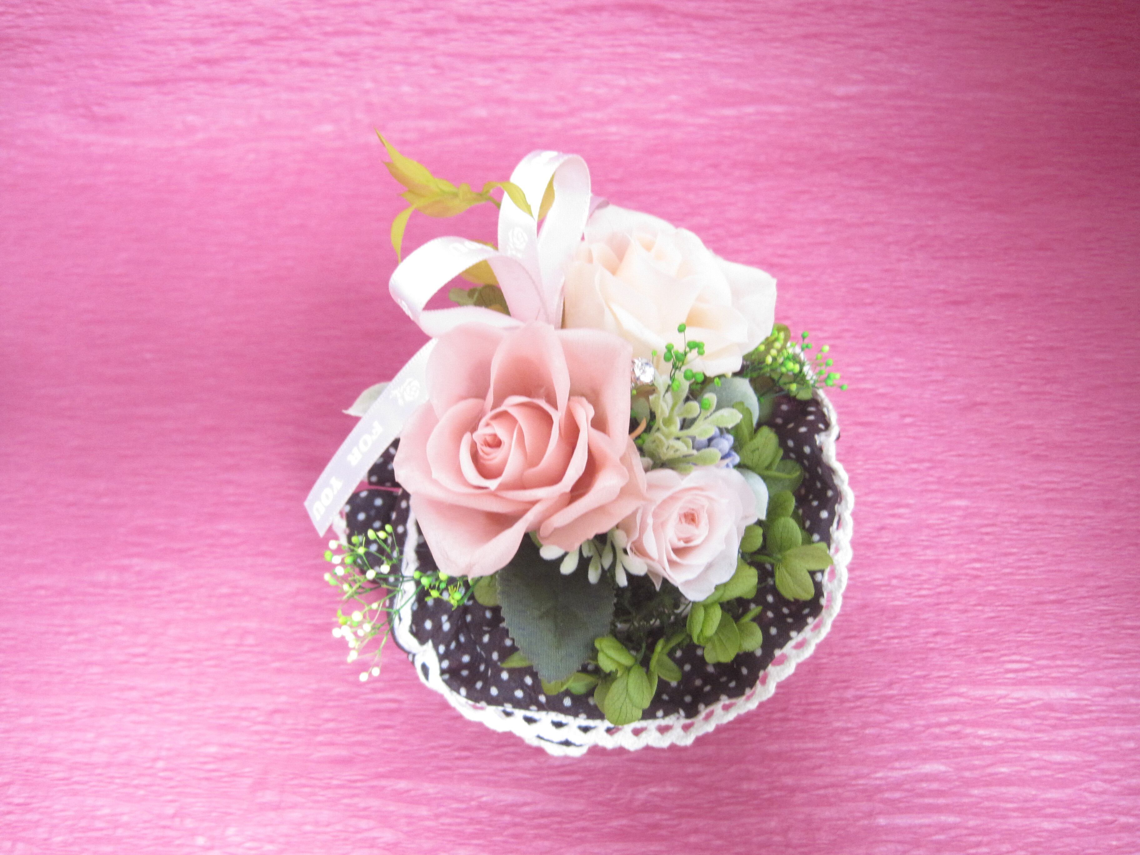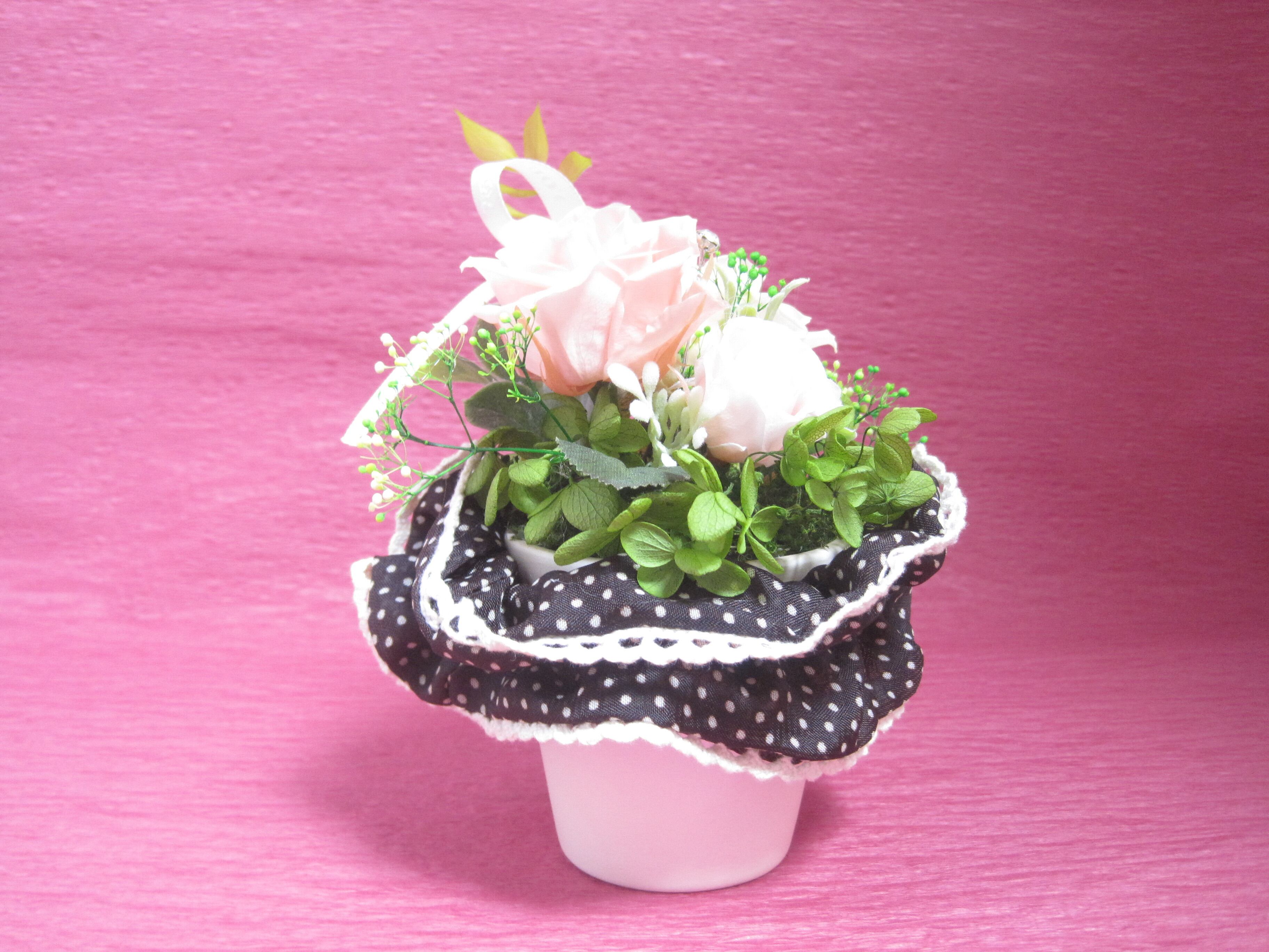 花いずもの誕生日花 (プリザーブドフラワー②:ラウンドポット) 「The pink garden」