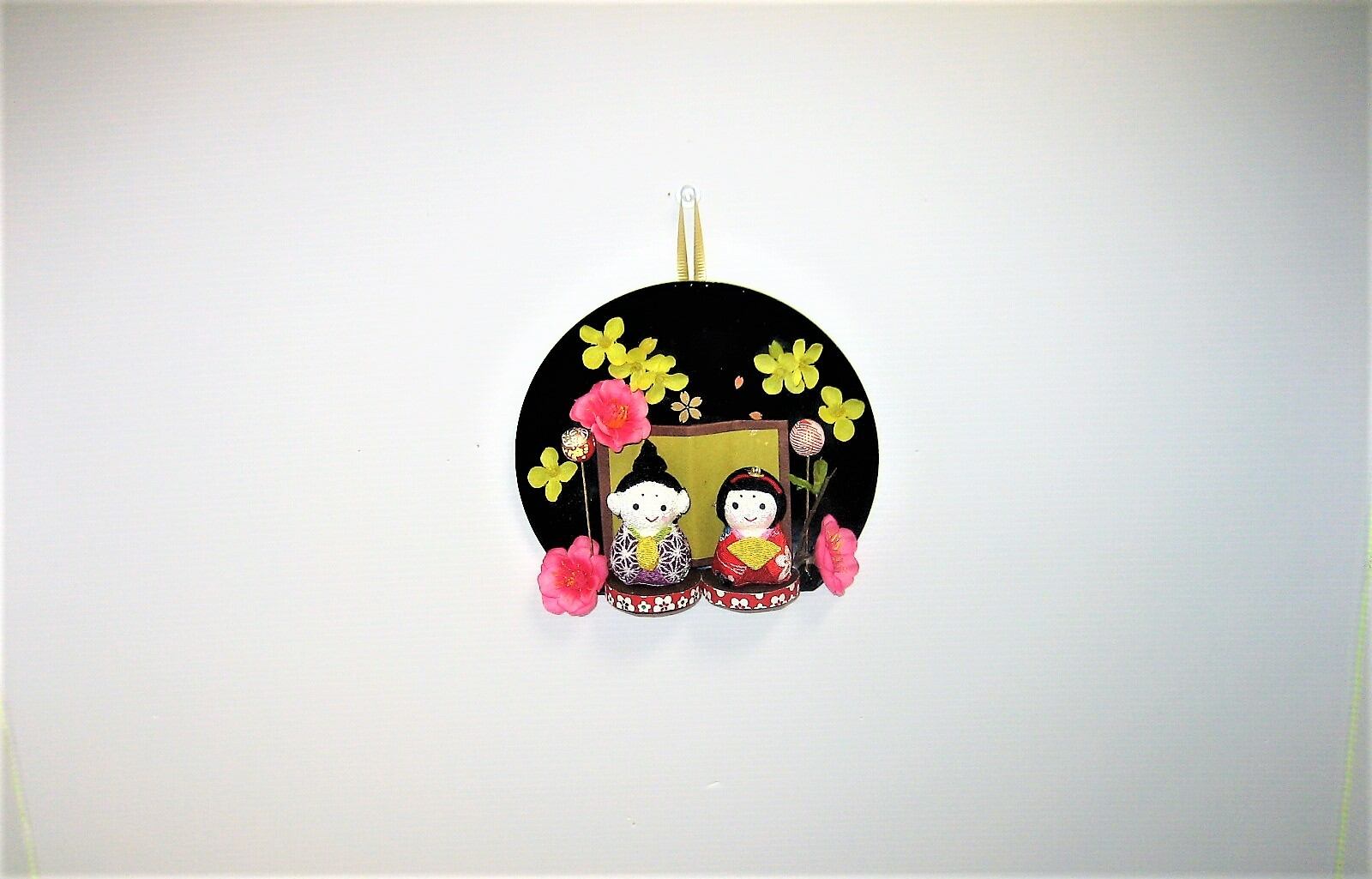 ちりめん細工のお内裏様とお雛様です。壁掛けタイプですが、置いても飾れます。 シチュエーションに合わせてお楽しみいただければ幸いです。 限定 1品となりました。 高さ 14cm 幅 15cm 奥行 4cm